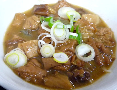 煮込¥350はよく煮込まれてトロトロ。モツも脂身がないところで柔らかく、汁自体もだいぶ粘度があってイイ。