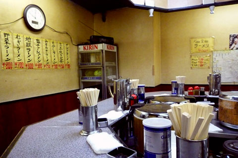 今は節電で、店内から漏れる明かりだけが頼りだが、以前は黄色い電球が明滅する、ド派手なラーメン定食屋然とした外観だった。