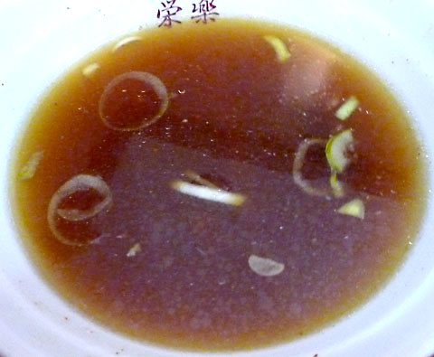 これだけでも十分満足なのだが、スープと無料のライスが実によく合う。単体では正直、カチカチライスなのだが、残ったスープにドボン!することで、適度にスープと油を吸って、丁度いい硬さになるのだ。全く偶発的なのだろうが、計算されつくされたとしか思えない!?