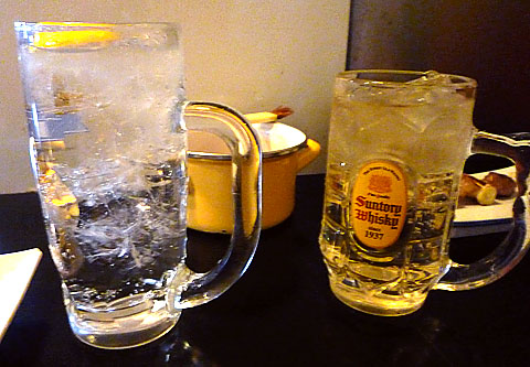 ハイボールは樽みたいな形のオフィシャルグラスで登場。どちらもスッキリした定番の味わい。