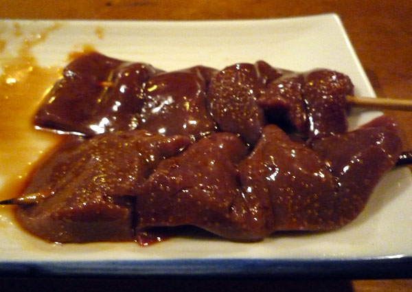 そして何と言ってもレバ。以前は生レバ(レバ刺し)が食べられ、生臭さは皆無でシャキシャキの超絶ものだったのだが、今はチョイ焼きという少し火を入れたものもダメになり、完全に火が入ったもののみとなった。それでもやはりレバ臭さはなく、シャキッとしたニュアンスが残っていて焼いたのもかなりよかった。