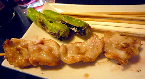 注文は、かしら以外を食べたい時にするって寸法。そして、もうかしらイラネって時はどうするのか不思議に思われるかもしれないが、ご安心を。空いた串でバッテンを作って皿に置いておけば、もういらないのサイン。