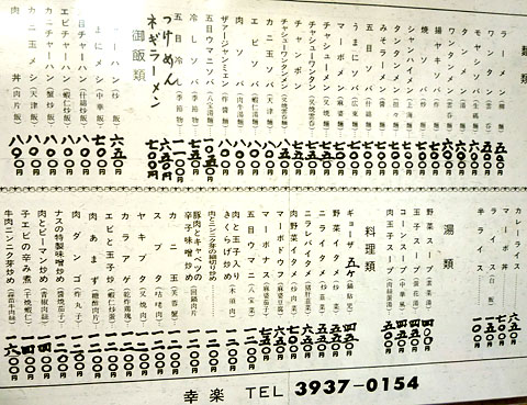 中はL字カウンターにテーブル席が4〜5卓だったかな。大きな鏡が据え付けられた壁には手書きのメニューがズラリと並ぶという町中華の典型的な作り。