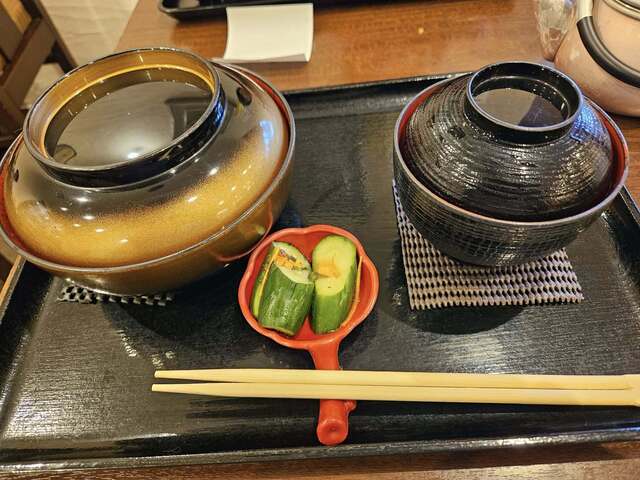 キュウリのお漬け物も美味、肝吸いも薄味でうなぎの濃い味を引き立てて美味でした