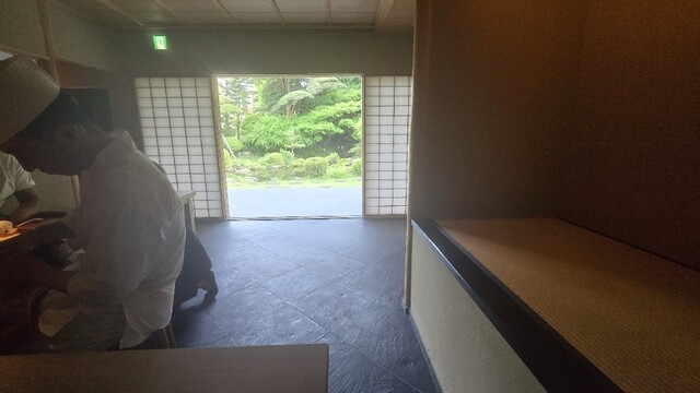 浅間神社の奥に隣接するように、風情情緒たっぷりの平屋木造建築。室町時代の武将、太田道灌が築造したという歴史に満ちあふれる日本庭園を眺められます。またお店への道すがらを歩いていますと、住居と住居のすきまから不意に富士山が見えたりします。