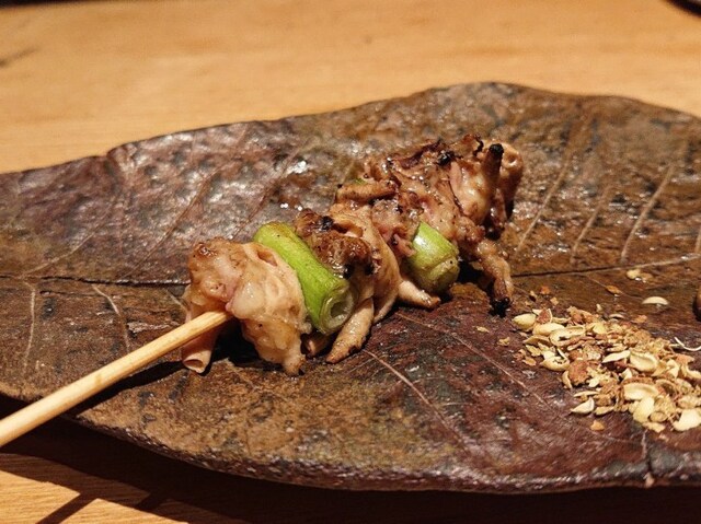 焼鳥の最後はもも塩。小さめのネギが間に挟まっています。