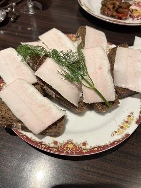 サロ自体も旨味十分。さらに黒パン甘味がありパサパサしててロシアを思い出す。最高の一品。