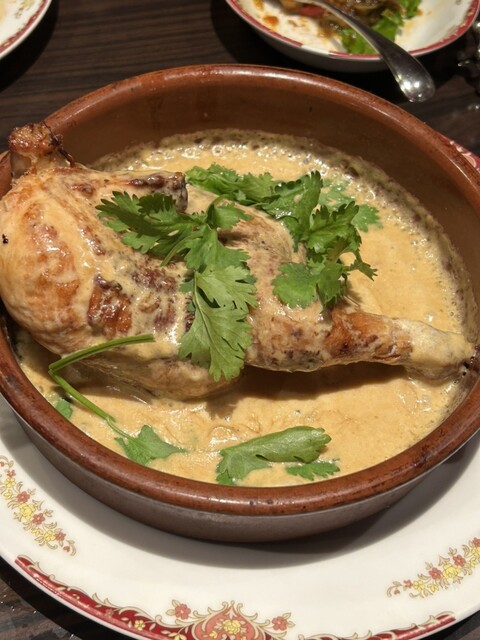 シュクメルリ(半身)◎ これは食べるべき。ちゃとしたガーリックソースと鶏肉が絡んでいる。