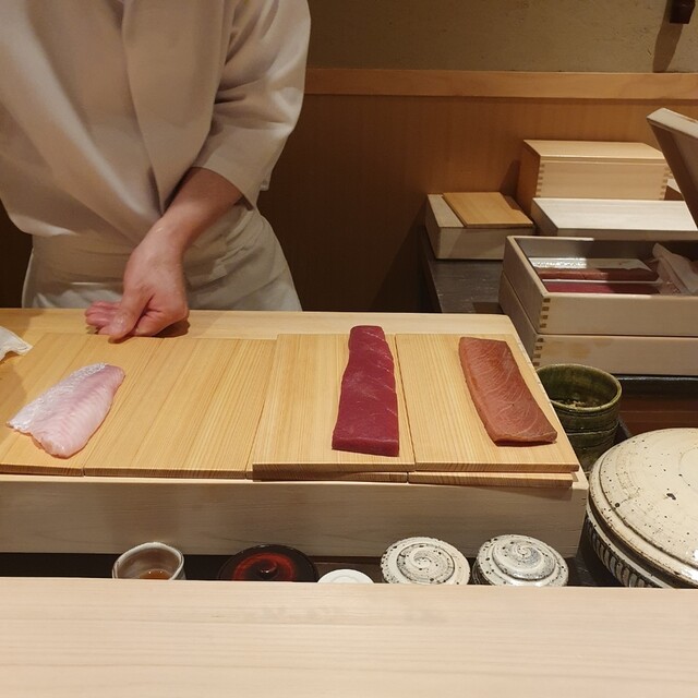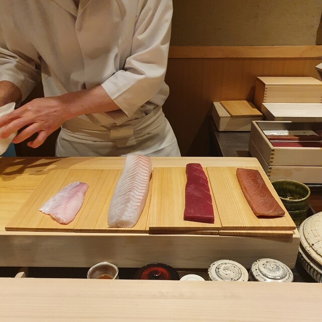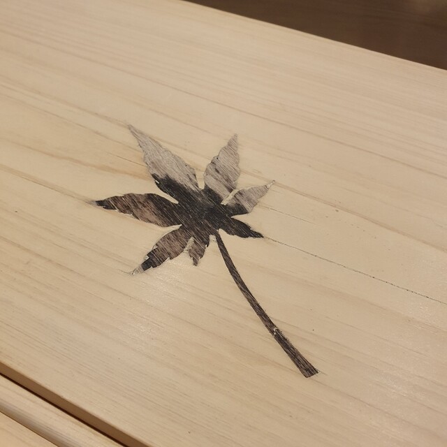 私たちが到着したとき、空間と雰囲気は非常に歓迎されています。カウンターに刻まれた葉っぱなど、寿司カウンターには意外な細かい部分があります。宮川さんは優しい性格で、とても快適にこのお店を訪れることができました。