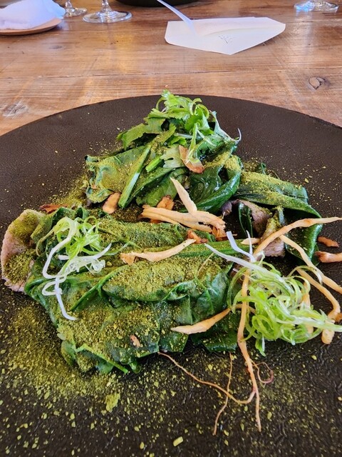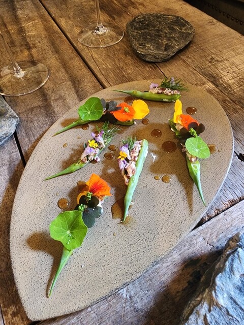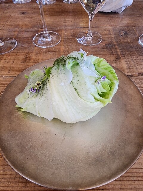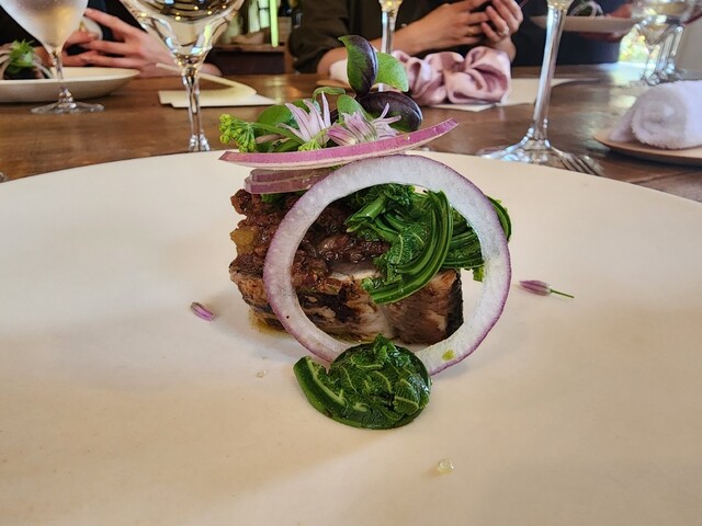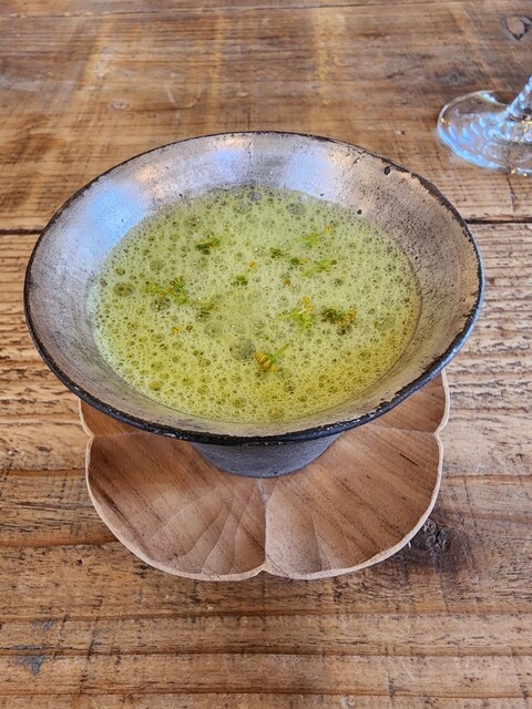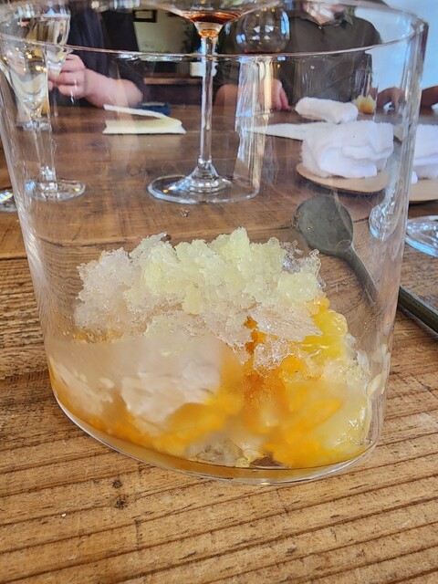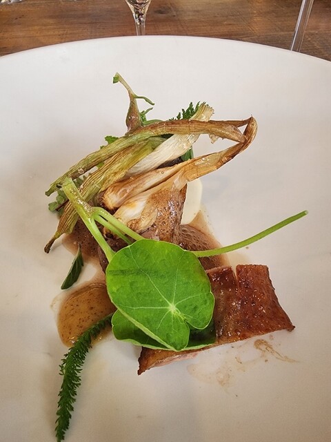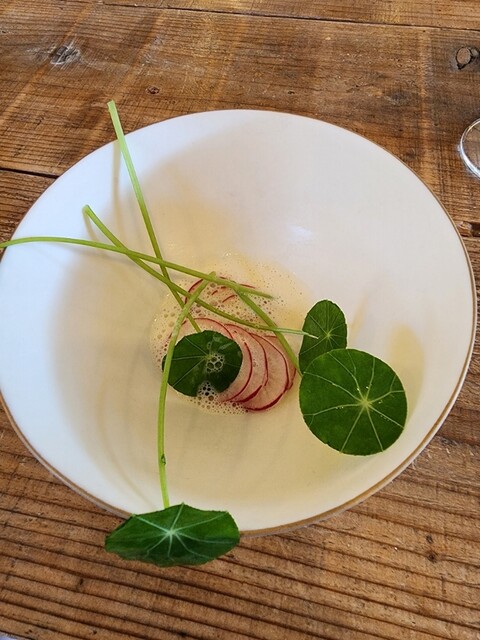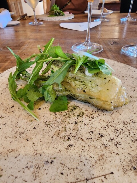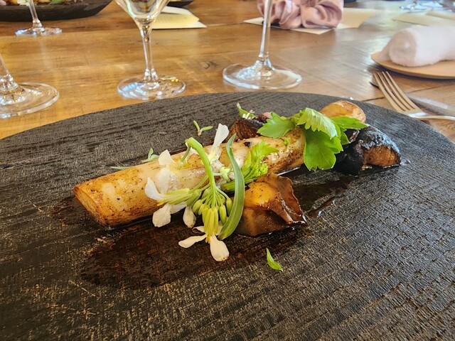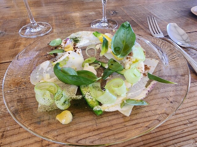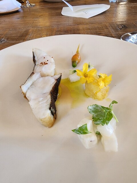 まだ気温が比較的高いので、この時期ならではのお野菜もまだまだありますね。すべてが高い技術力で精密に調理されています。薄くスライスされた魚介類、完璧に調理されたクエ、そして様々なハーブや花、ソースはとても素晴らしい体験でした。