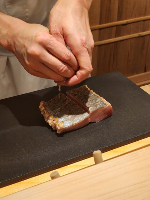 鰆、平目、のどぐろなどの旬の食材がメニューに盛り込まれていました。メジまぐろのような季節の食材がいくつかありました。私たちが食べたのはたった17kgの大きさで、通常のマグロと比べて味や食感に大きな違いがあります。