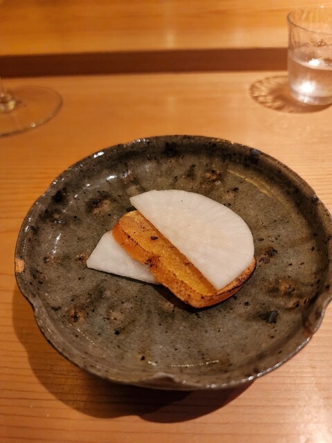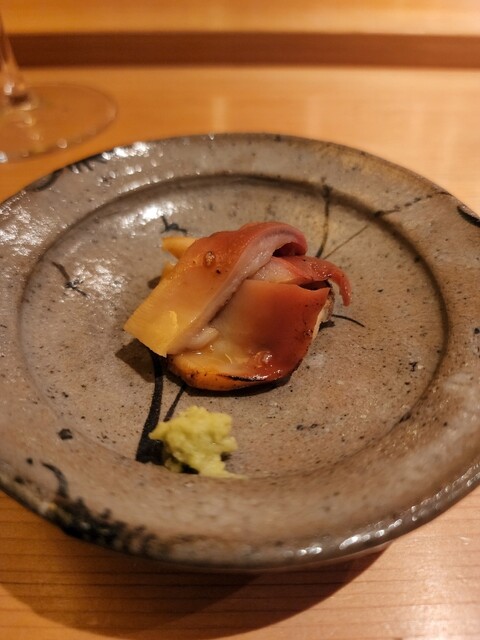 おつまみはいつもながら美味しかったです。ほたるいかとからすみの料理がとてもおいしかったです。味もバランスも最高です。シャリは今日は力強くて良かったですが、握りとの相性は悪かったと思います。次回は、お酒のペアリングは注文しないことにします。日本酒は相性が良かったのですが、実は白ワインとボルドーワインは私には少し難しかったようです。