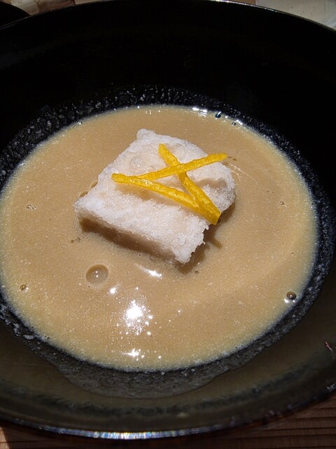 8. 自家製焼き胡麻豆腐。ふきのとう味噌