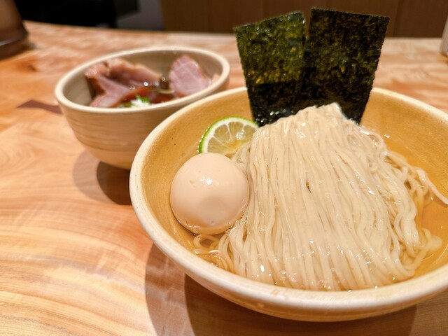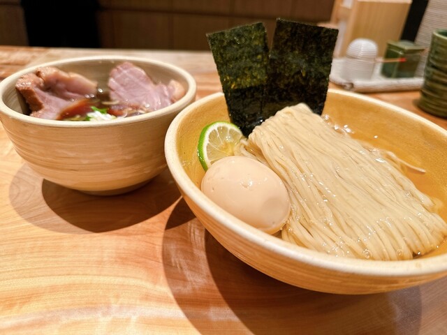 つけ汁につけて食べると上品な味わい。粘度のある鰹昆布出汁を纏ってモチモチ食感でした。まさに至極の一杯です✨