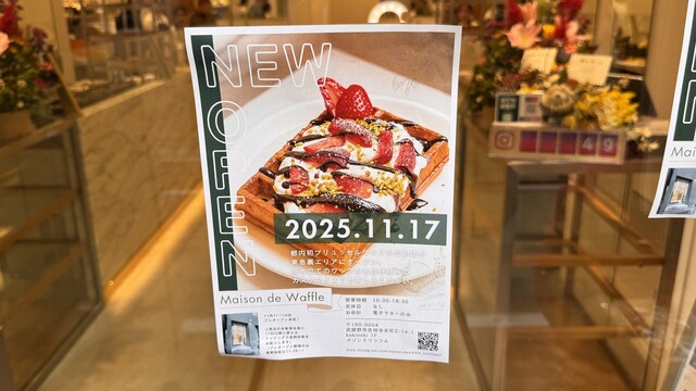 吉祥寺に都内初となるブリュッセルワッフル専門店「メゾンドワッフル」が2025年11月11日(火)にプレオープンしたので早速行ってきました