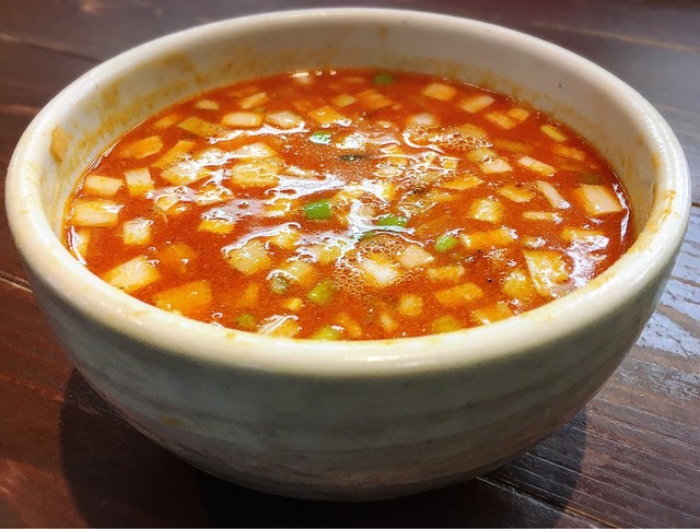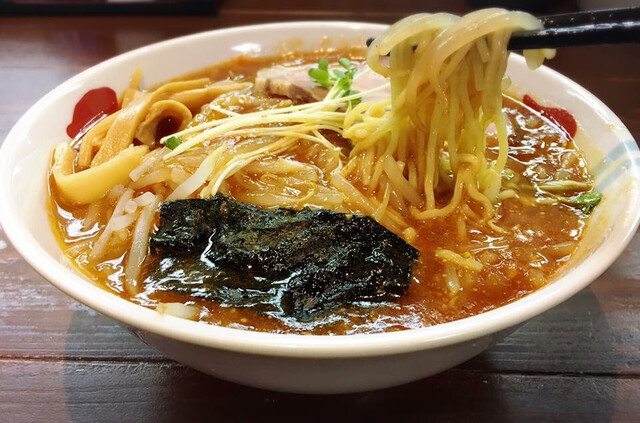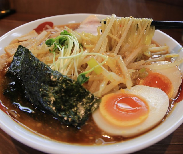 イメージは、ガツンと辛さが来るのかと思っていましたが、マイルド〜〜です。麺がスープに絡む絡む!