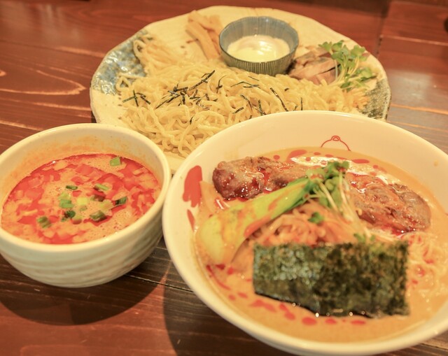 現在、期間限定提供となっております"冷やしコク辛そば"と、私の定番である"冷やしspecial"の『食べ比べ』です。