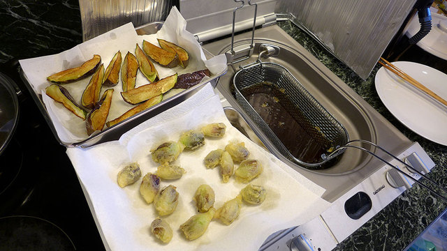 茄子と茗荷を揚げました。