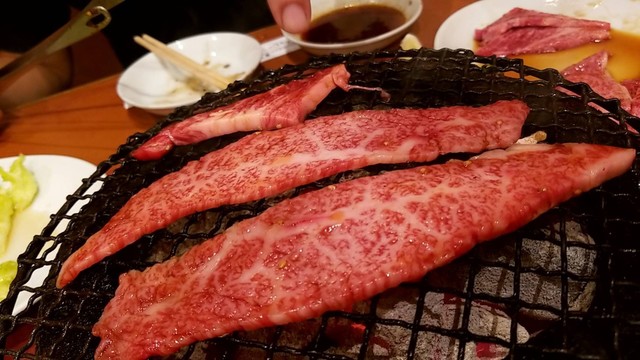いやいや~、並みのカルビからして普通じゃない肉のクオリティの高さに加えて宇宙一の焼き手の栖原さんの究極の火入れで頂くので、幸せ過ぎて笑いが止まらない♪