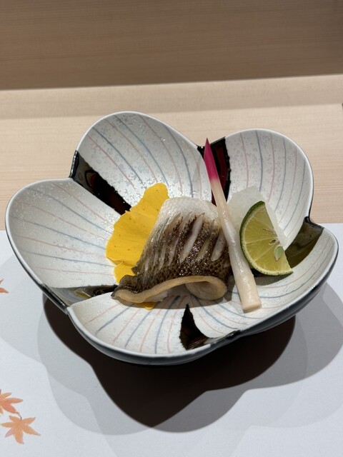 ◯白子・サザエ・昆布で巻いたコハダの前菜