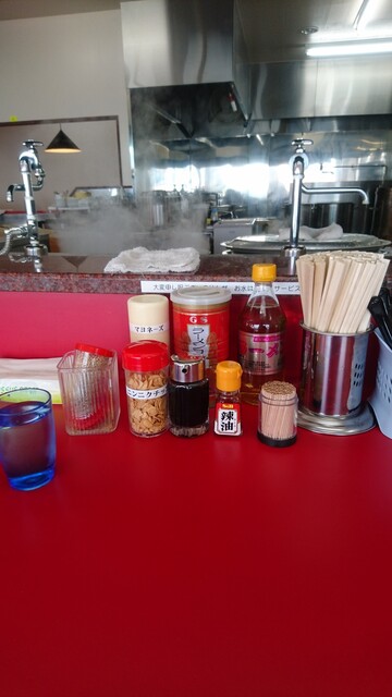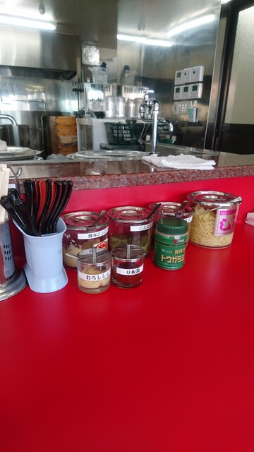 目の前には、行者にんにく、ニンニクチップ、ラーメン酢…etc.しっかり系譜されてますねー
