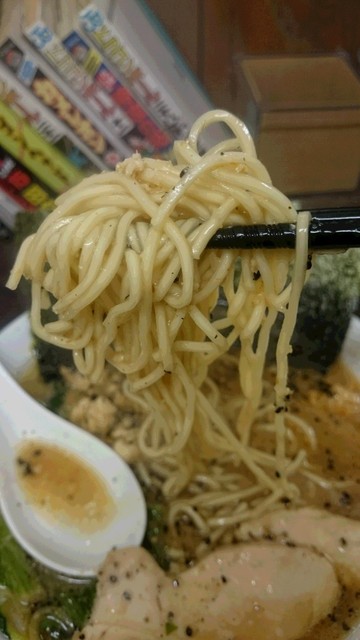 太麺が酒井製麺に変更。といっても中太より細いタイプです。稲毛・虎ノ穴さんの通常麺と同じじゃないでしょうか。