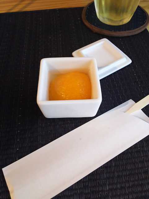 その後、再び店員さんが、小さな四角いものを「デザートです」とおいて行った。