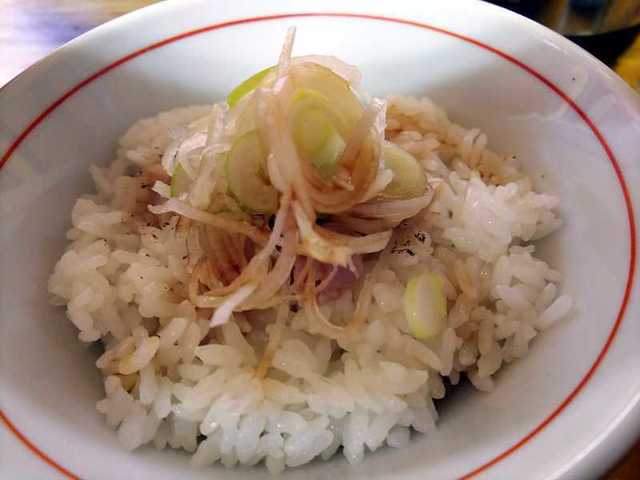 油をまぶしたのか、かけたのかのご飯の上に刻んだ白ネギが乗っている。