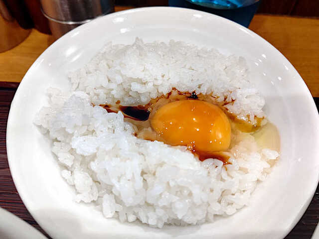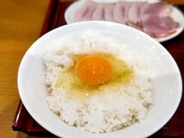 毎回お約束の 皿盛チャーシュー も一緒に。そして卵かけごはんも追加して。