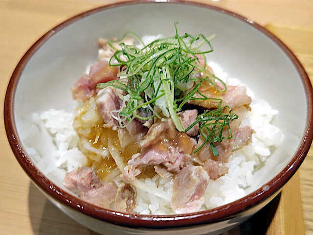 焼豚丼であるが、ご飯の上に塩ダレをまぶした焼豚と刻みネギがのっかったものである。その塩ダレが、これまた美味しいではないですか。