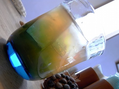 さらなるご満悦を求め ここで梅酒ロック! このグラス綺麗でした〜