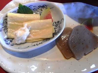 湯葉 上にのっているは仏掌芋 大和野菜らしいです!