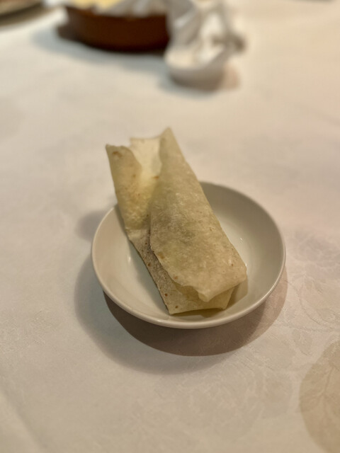 蟹コロッケをはさみ、またまた主役級の北京ダック。随園さんのは皮だけでなく、肉の部分も一緒に味わうスタイル。皮はパリッと、肉はジューシーで甜麺醤の利いたソースで頂くと至福の時間が訪れる。