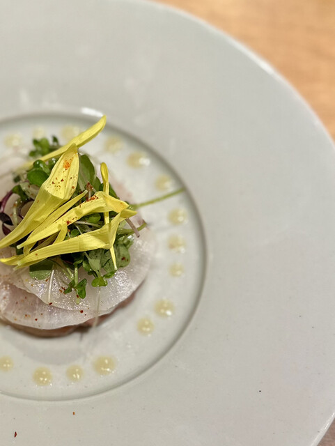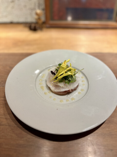 ②柚子香るSi.ba.kiのブリ大根: 想像していたブリ大根とは全く違う気品のあるビジュアル。大根の食感と柚子の香りが鰤を引き立ててくれる一品。期待が益々膨らむ。