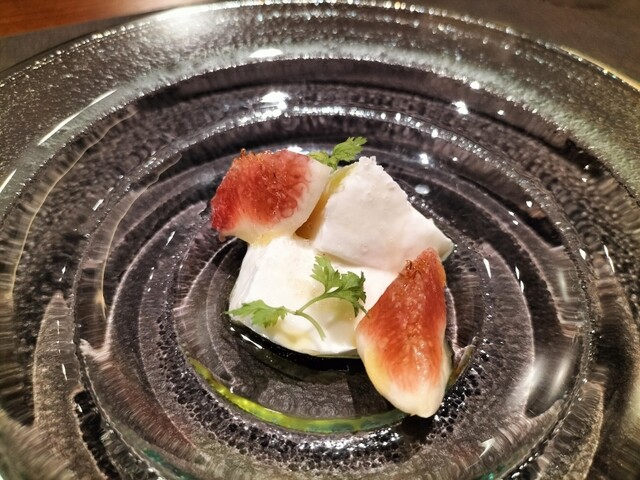 まずは最初の手作りチーズ。添えられているのは定番のトマトではなく無花果と柿でした。