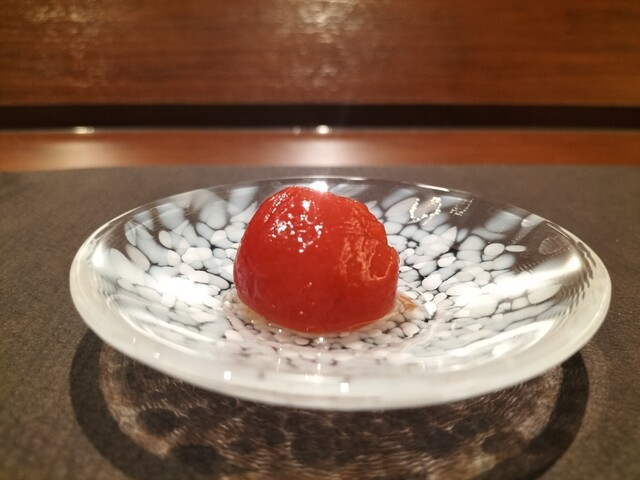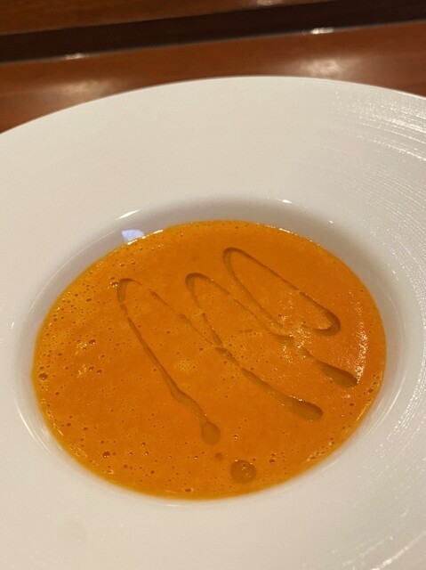 暑い時期だからということで突き出しはガスパチョ。とろりと濃厚で素材の凝縮感がすごいです。