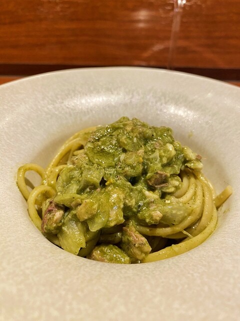 パスタは落花生と椎茸を使った少し和のテイストを感じられるもので、こちらも絶品でした。