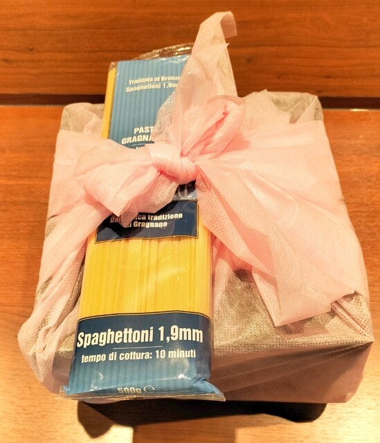 あと、受け取るときに乾麺のパスタが一袋そのまま箱の上に乗っていたのも(笑)思わずその場で写真を撮ってしまいました!