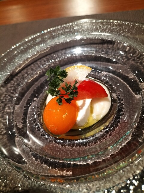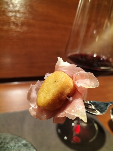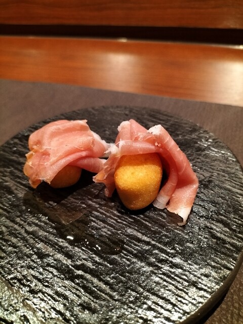 1皿目の定番のモッツァレラチーズが手作りになってたり、生ハムが3年熟成から2年熟成に変わってたり、生ハムの下のニョッキはさつま芋(シルクスイート)に。