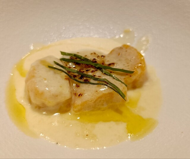 締めは普段は生ハムと一緒に提供されるニョッキをチーズたっぷりのソースを絡めて出してくれました。