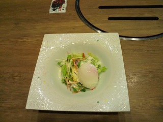 最初のサラダは半熟卵が載っておりこれは箸では少々食べ辛かったです。