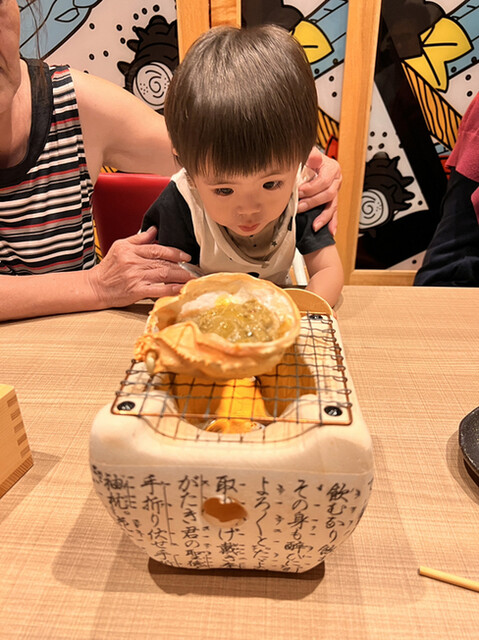おすすめは、カニ味噌甲羅焼きだ。たまごのまぜて、甲羅ごと焼きながら、香ばしい香りも楽しめる。