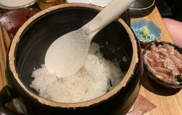 最後はワサビ飯。土鍋で炊かれたご飯・・・。