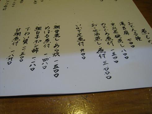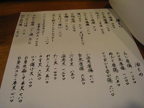 切り身から推測すると、あまり大きくないサワラですが、食べてみると大変美味しいです。サワラはアシが早いので少し古くなったものを刺身にしても美味しくないです。このサワラは獲れてからそんなに時間が経ってないのでしょう?実際に大将に聞いてみると「今日は市場が休みだったんだけど、このサワラは知り合いが釣ってきたものです」という事でした。まずは美味しさに納得。