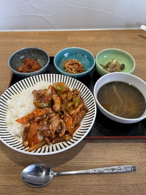 スンドゥブのランチセット1000円税込をオーダーしました。カウンター席に座りました。ごはん、小鉢3種、スンドゥブというないよう。ちょうどよい辛さでめちゃくちゃおいしいです。PayPayつかえて便利です。