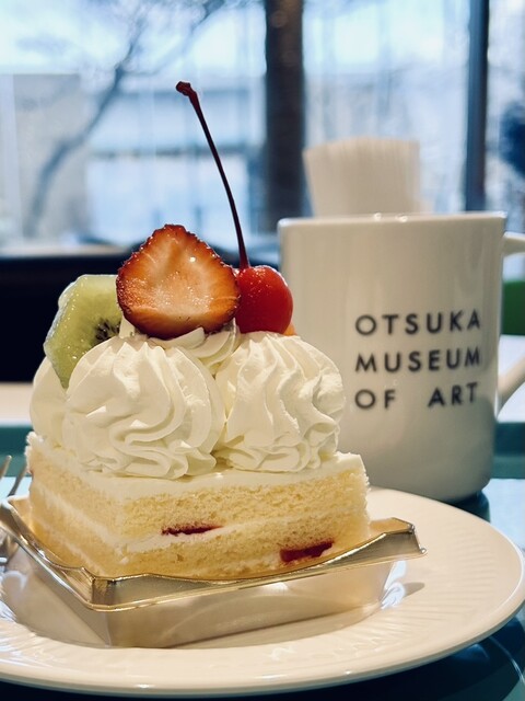 大きな美術館なので、途中で疲れてお茶をすることに。ケーキセットをオーダー。ケーキは5種類ほどメニューにありましたが、連休に入ったのでほとんど売り切れの人気ぶりでした。ケーキのレベルがたかく、見た目も味も大満足。セルフ形式です。