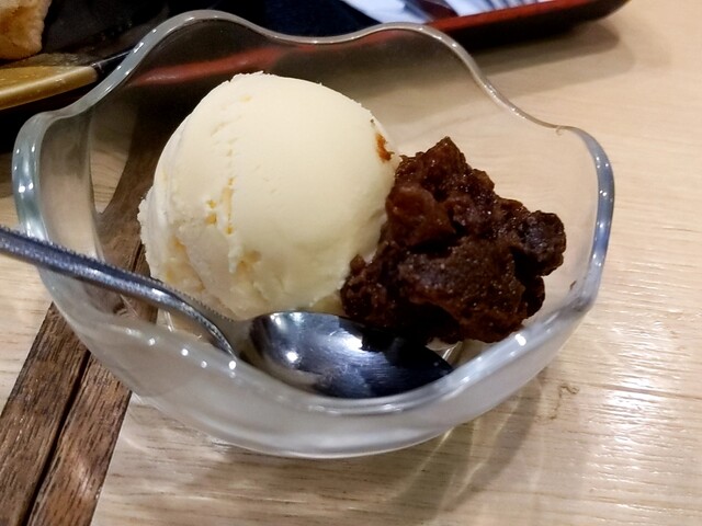 和食居酒屋さんらしいデザートで、丁寧に焼かれていて黒糖を使ったっぽい蜜も美味い。