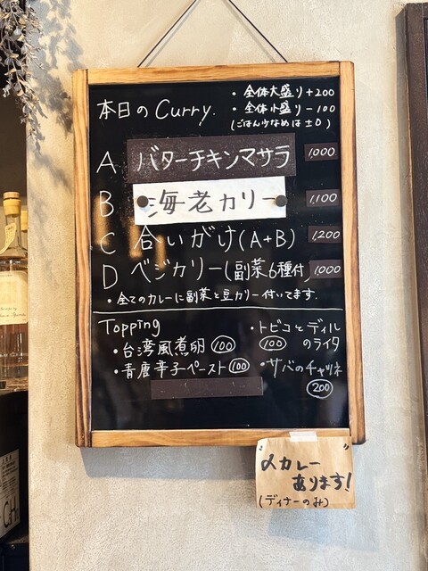 カウンター席に通され、あいがけカレーと台湾煮卵を注文。
