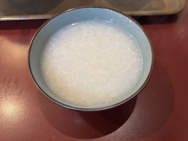 今日は、揚げワンタン粥、小籠包、チャーシューマン