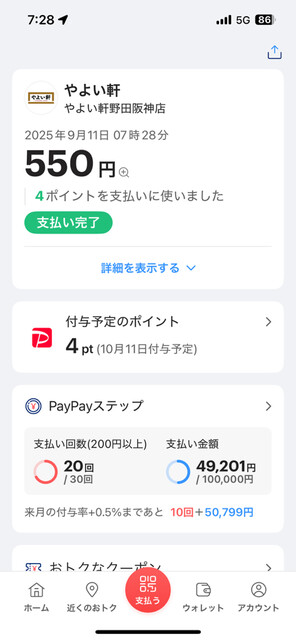 お日様が昇ってから朝食を食べるのは数ヶ月ぶりです。PayPayが使えそうなので初めて入ってみました。